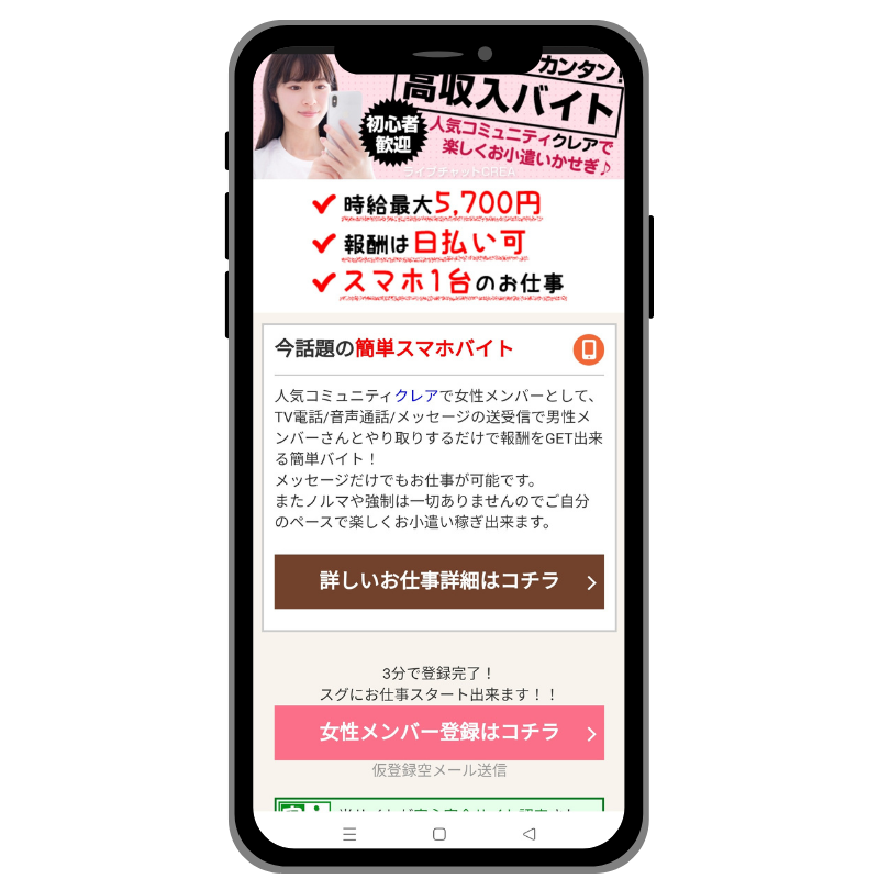 使い方をしっかり守れば、ほとんど身バレのリスクなく、安心して始められるお仕事です。