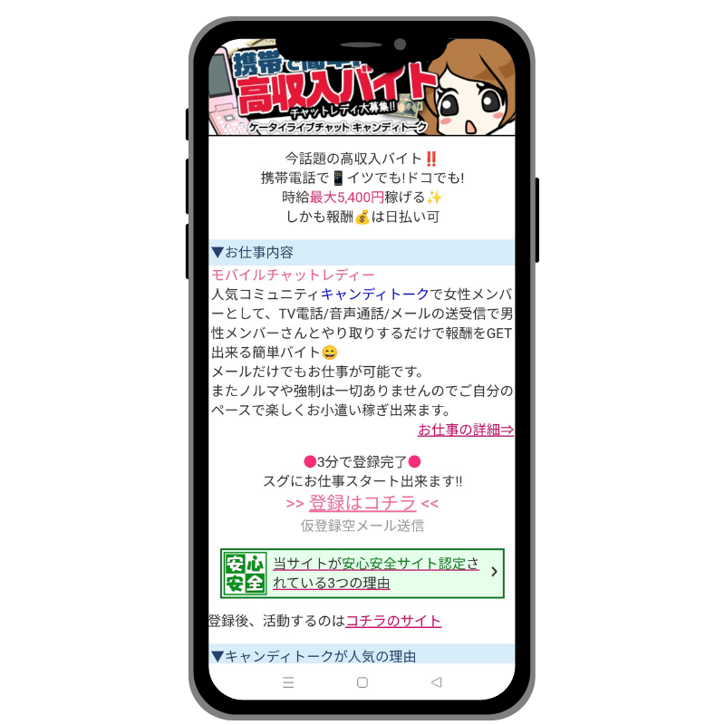 使い方をしっかり守れば、ほとんど身バレのリスクなく、安心して始められるお仕事です。